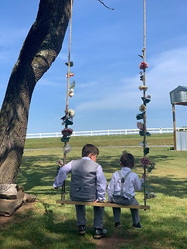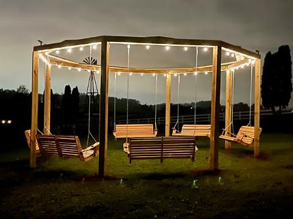 The property is landscaped with an large array of swings, engraved stones, wagons, carriages, flowers, trees, wagon wheels and barrels. Many locations for perfect photos of your special days.